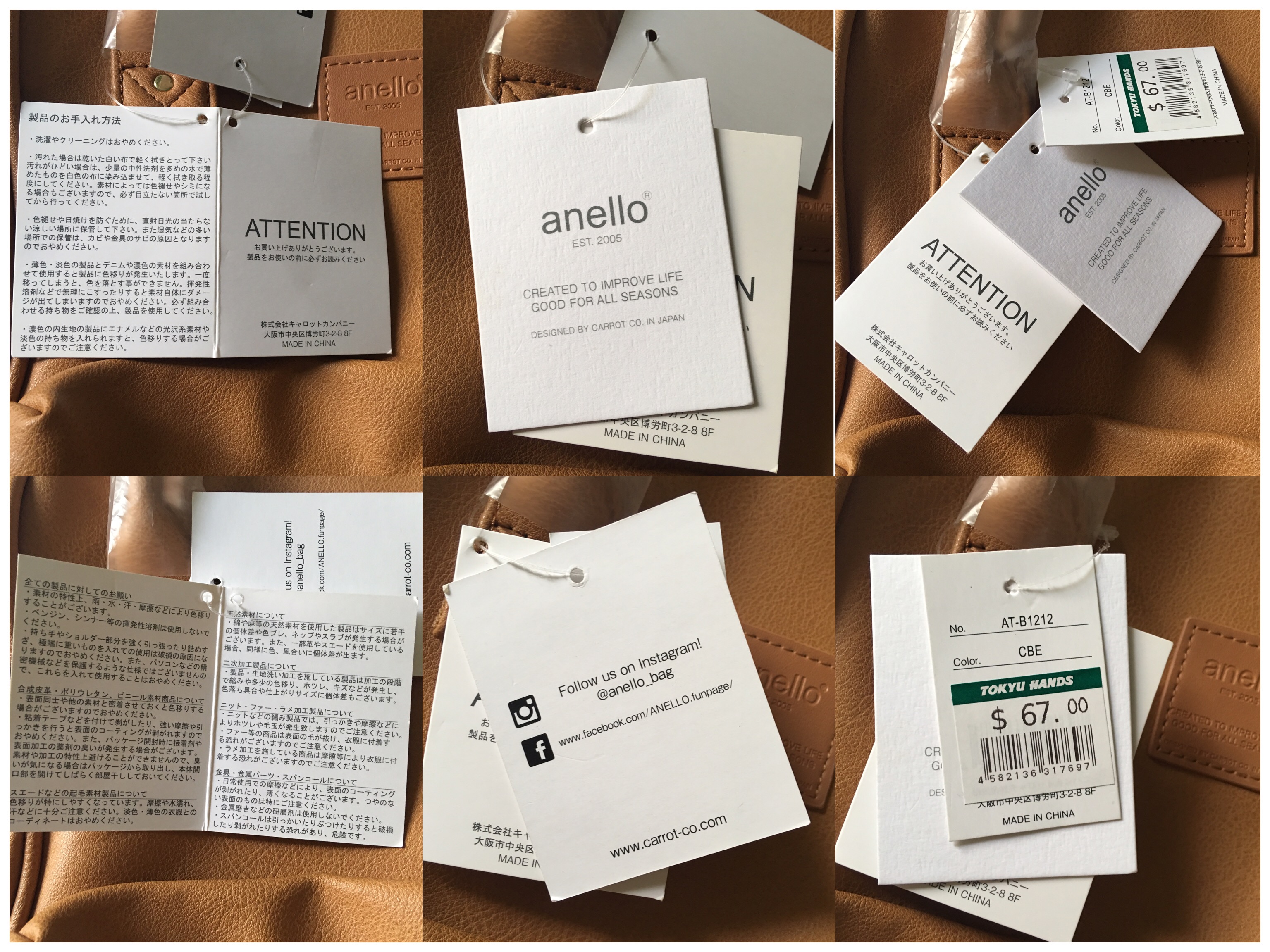 Anello Bag tag authentic Japan Osaka Tokyu hands Umeda SingaporeI upload this photo so that you can bring this photo around to compare to the tags on the bag.